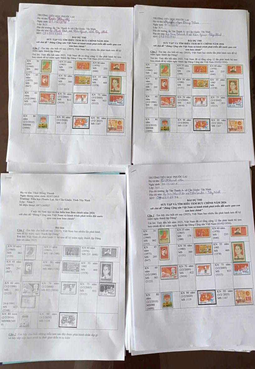 Thực hiện Chương trình Công tác Đội và phong trào thiếu nhi năm học 2025 – 2026 của Hội đồng Đội xã Cần Giuộc; đồng thời thực hiện giao ước thi đua năm học 2025 – 2026, ngày 04/3/2026, Liên đội Trường Tiểu học Phước Lại đã kết thúc đợt triển khai cuộc thi tìm hiểu tem bưu chính với chủ đề: “Đảng Cộng sản Việt Nam và hành trình phát triển đất nước qua con tem bưu chính”.